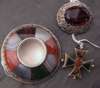 a 'Maltese' cross pendant brooch set with agates and cornelian, together with an oval smoky quartz set as a brooch with a lace work silver surround