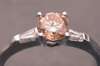 set with a circular cut fancy light orange diamond weighing 0.62 carats, sided by baguette-cut diamonds