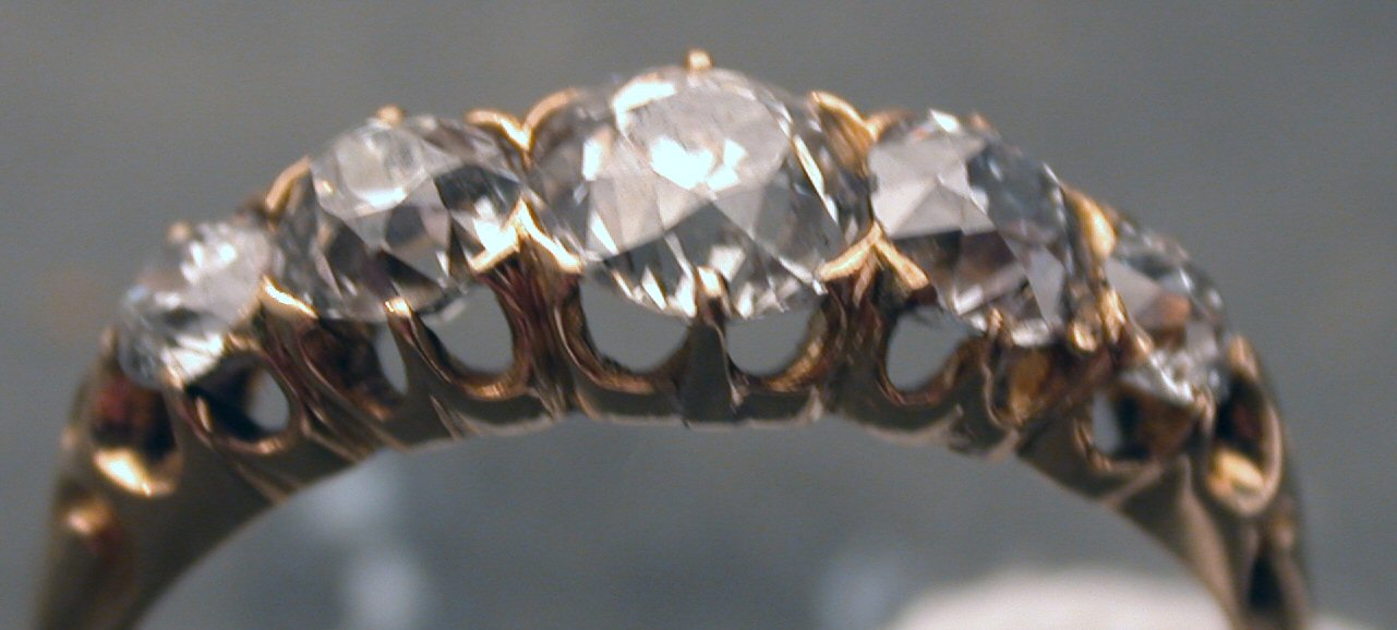 An 18ct yellow gold half hoop open claw ring set with five graduated old cut diamonds