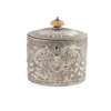 W.S, London 1790, of oval form, all over embossed floral shell and scroll decoration, vacant shield cartouche to centre of either side, the hinged lid with similar decoration and ivory finial