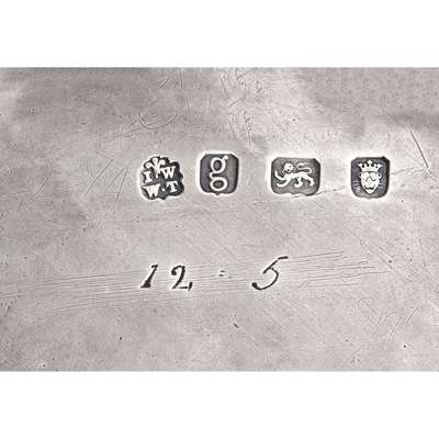 John Wakelin & William Taylor, London 1782, of circular form with beaded border, engraved coronet to centre above italic A/JG, raised on three bracket feet