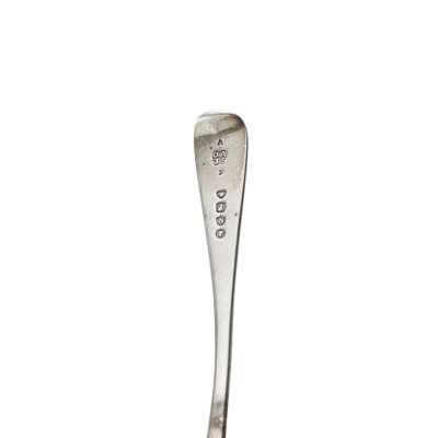 to include a George III strainer spoon, TN, London 1787, Old English pattern, engraved crest for Percy family; a fish slice, William Eley, William Fearn & William Chawner, London 1812, of Fiddle and Thread pattern, crest engraved to terminal, a basting spoon, William Eley & William Fearn, London 1806, of Old English Threaded pattern, a double-ended marrow scoop, John Langlands II, Newcastle; together with various other flatware including a collection of condiment and teaspoons