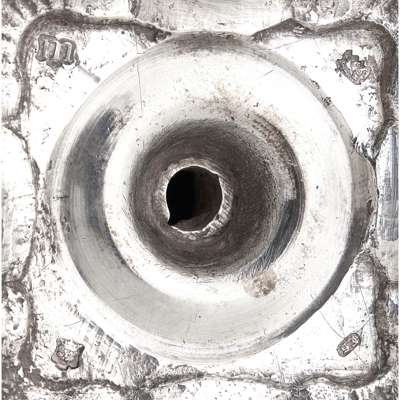 ES, London 1747, each cast with a knopped stem and removable sconces (one unmarked), shell detail to the knopped stem and the square base