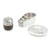 Edward Smith, Birmingham 1864, of bath outline, engine-turned detail to the exterior, engraved crest with two bar rest across the middle; together with a snuff box, 1896 of oval outline, engraved scroll and foliate detail throughout, vacant cartouche to centre; a snuff mull, the white metal hinged lid with embossed thistle decoration and collet-set paste