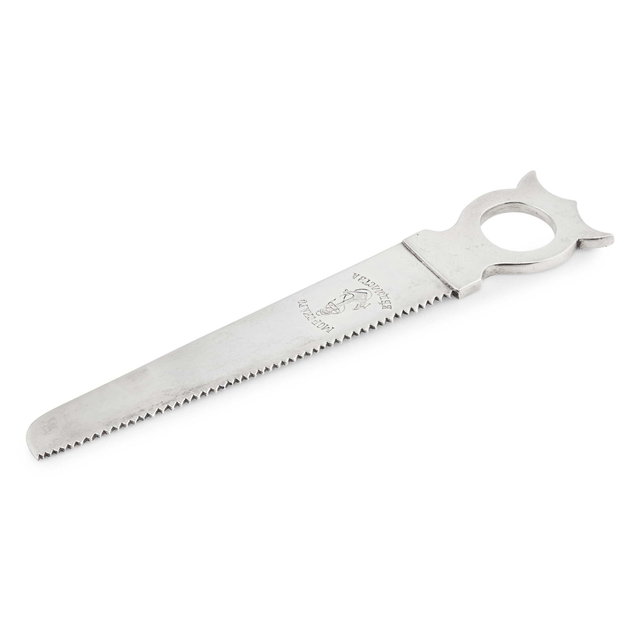 J.A., Moscow, with kokoshnik marks, the serrated blade with an engraved anchor and inscription, the loop handle with shaped terminal