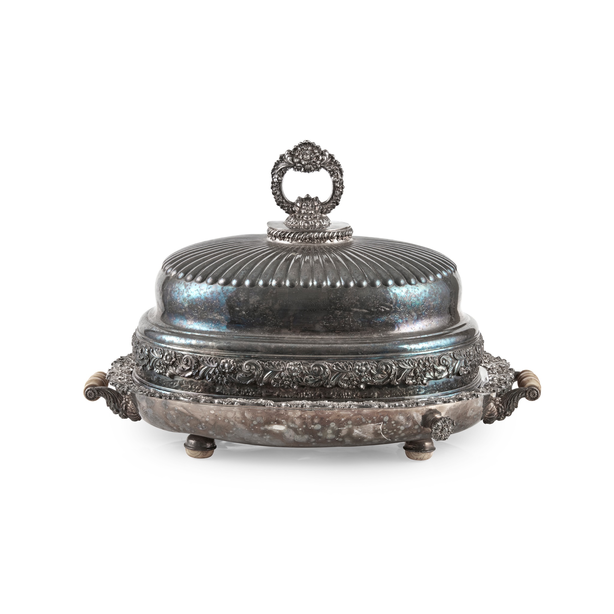 A large 19th-Century Sheffield plate meat dish and cover Y