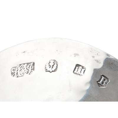 Hamilton & Inches, Edinburgh 1909, the hemispherical oval bowl of planished finish with four curved legs to an oval foot; together with a letter opener, London 1980, the terminal modelled as a centaur head