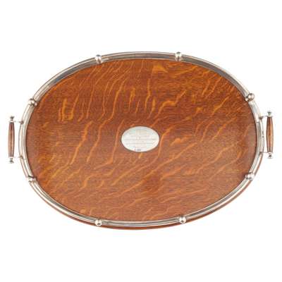RAILWAY INTEREST - A late Victorian presentation silver-mounted oak tray