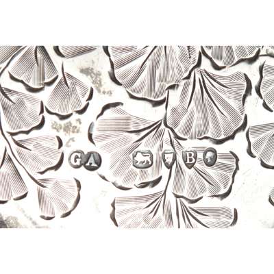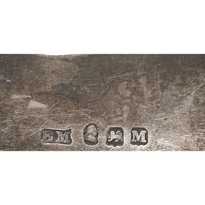 George Aldwinckle, London 1877, of oval outline with screw-off cover and pull-off cup, all over engraved floral decoration, engraved crest and motto, ‘OPTIMA EST VERITAS’ for the THOMSON family, to centre; together with four George III wine labels, Edward Mayfield, London1807 two for PORT, two for MADEIRA