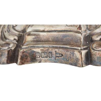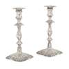 Walker & Hall, Sheffield 1902, each of knopped baluster form, to a rounded square base with scroll foliate corners, with fixed sconces (loaded)