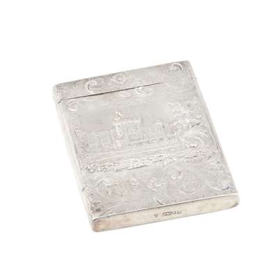 Taylor & Perry, Birmingham, of rectangular outline, depiction of Windsor and Warwick castle to the other, each in a chased and engraved scroll and foliate border