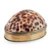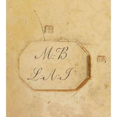 Thomas Phipps & Edward Robinson, London 1794, the polished cowrie shell mounted with a plain silver-gilt rim, the hinged cover inset with glazed panel enclosing a locket of hair with the letters MB/ LAJ engraved to the underside