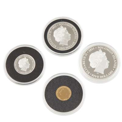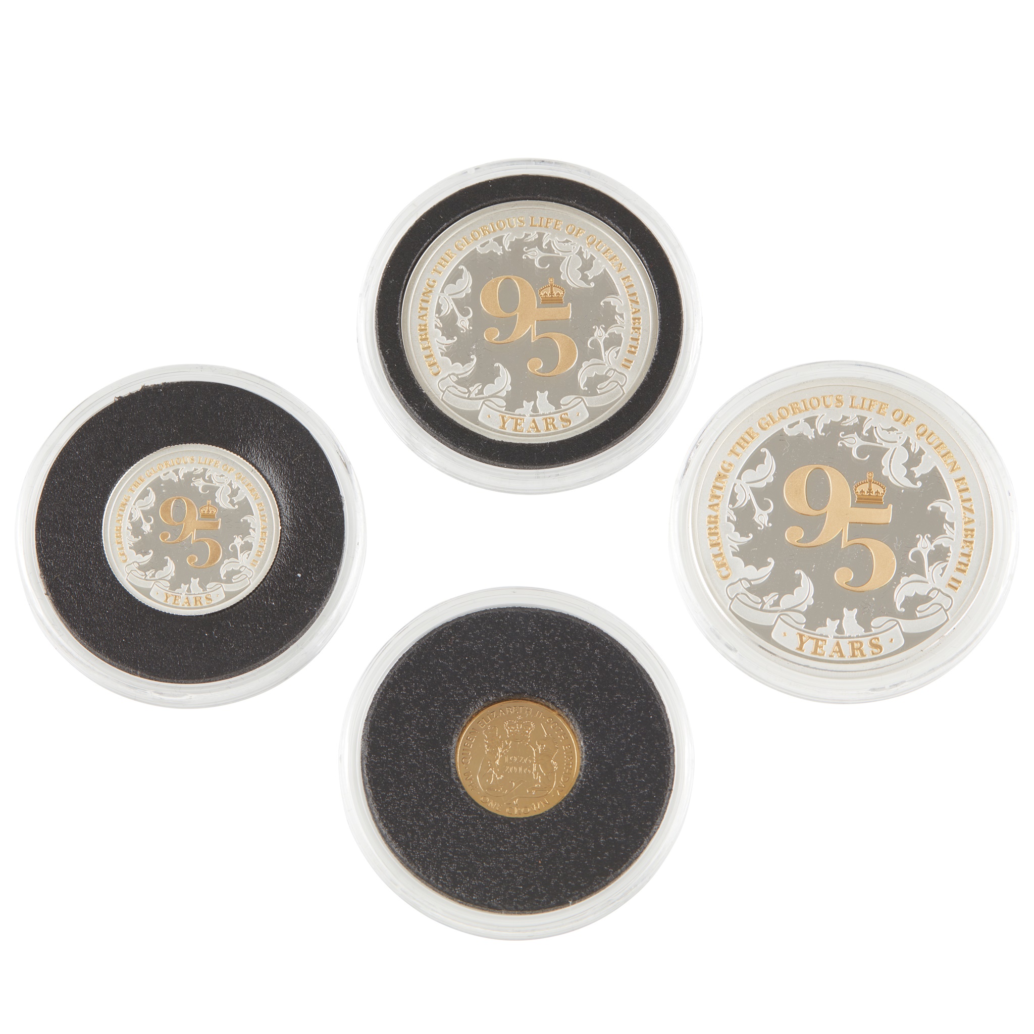 to include, two Queen Elizabeth II 90th birthday 9 carat gold one crown, issued by Tristan Da Unha and a three coin 95th Birthday of Queen Elizabeth II fine silver Soloman Islands collection