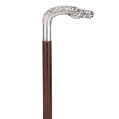 Dunhill, London 1982, the silver-mounted handle modelled as a racing horse’s head, to a hardwood tapered cane
