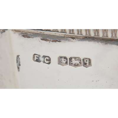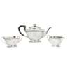 Frank Cobb & Co Ltd, Sheffield 1933, comprising a teapot, twin handled sugar basin and a milk jug, all of octagonal outline, with a gadrooned border, engraved Gothic S to body, each raised on an octagonal foot