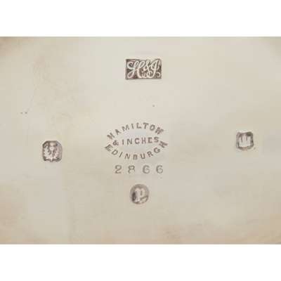 Hamilton & Inches, Edinburgh 1898, comprising, a teapot, waterpot, twin-handled sugar basin, and milk jug, all of oval outline, demi-fluted bodies with threaded waist, angular handles, each raised on an oval foot