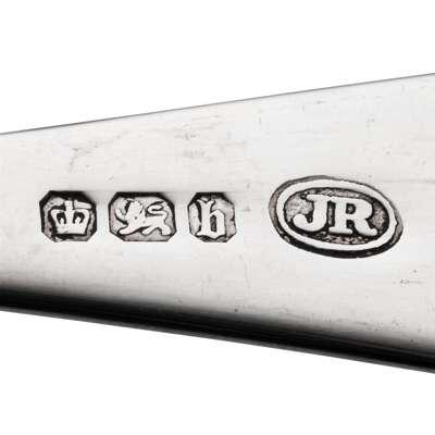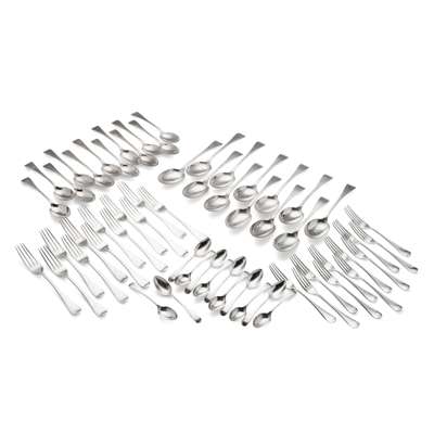 John Round & Son Ltd, Sheffield 1894, comprising twelve of each, tablespoons, table forks, dessert spoons, teaspoons, and eleven dessert forks, all of Old English pattern with engraved initial, Gothic P to terminal