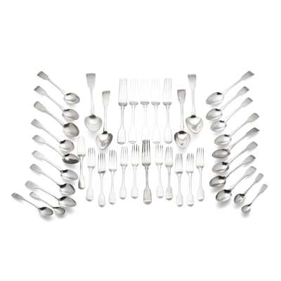 various makers and dates, mainly Victorian, Dublin, comprising, four tablespoons, six table forks, sixteen dessert spoon, eleven dessert forks, fourteen teaspoons, and a collection of condiment spoons, all of Fiddle pattern