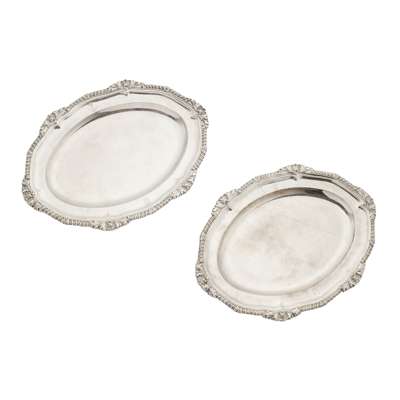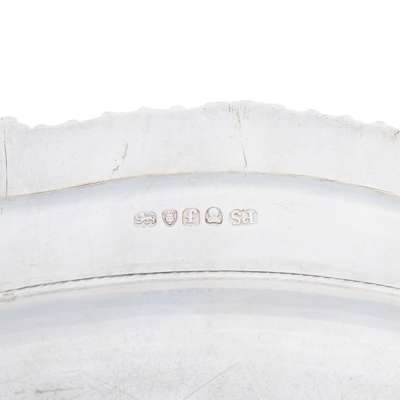Paul Storr, London 1821, of shaped oval outline with a cast gadrooned and leaf clasped shell border, engraved Gothic D to one side of rim, crest and coronet to the other side