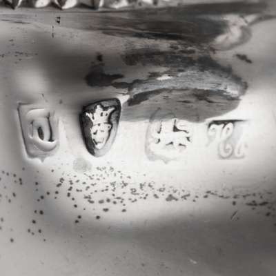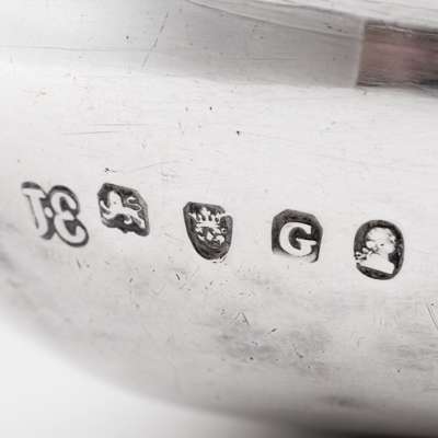 Hester Bateman, London 1774, with a gadrooned undulating border; together with a pap boat, John Emes, London 1802, with threaded border and engraved initials to body and another George II pap boat