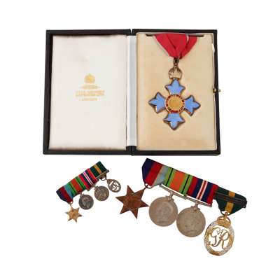 Lt. Charles Beresford Marshall, RAF. M.B.E., A.V.M., B.W.M., with signed certificate, Freedom of London certificate, Warrant holders' book; tennis medal 1924; a silver table cigarette box, engraved RAF crest and facsimile signatures of fellow officers and mascot "Chinok" and a smaller silver table cigarette box, his wife's SAFA badges; To George Wilson C.B.E., 1939-45 star, defence Medal, BWM., Territorial medal and bar George VI, with dress miniatures. To Grp. Ldr. Walter Goodenough, Defence Medal, B.W.M., Special Constabulary