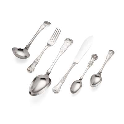 A collection of Queen's pattern and Queen's pattern variant flatware