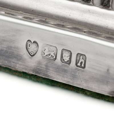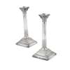 D J Silver Repairs, London 1963, each of Corinthian form with an embossed scroll detail to the neck, to a stepped square foot with beaded borders, the removable scones with similar beaded detail (loaded)