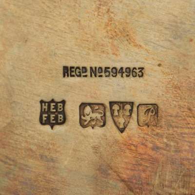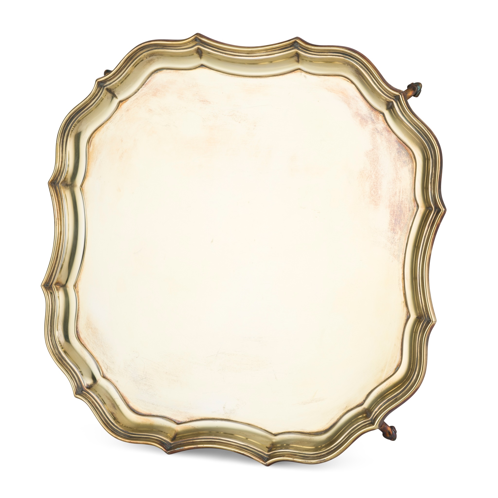 Barker Brothers, Chester 1915, of moulded square outline with raised threaded border, raised on four hoof feet