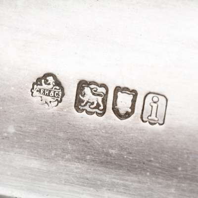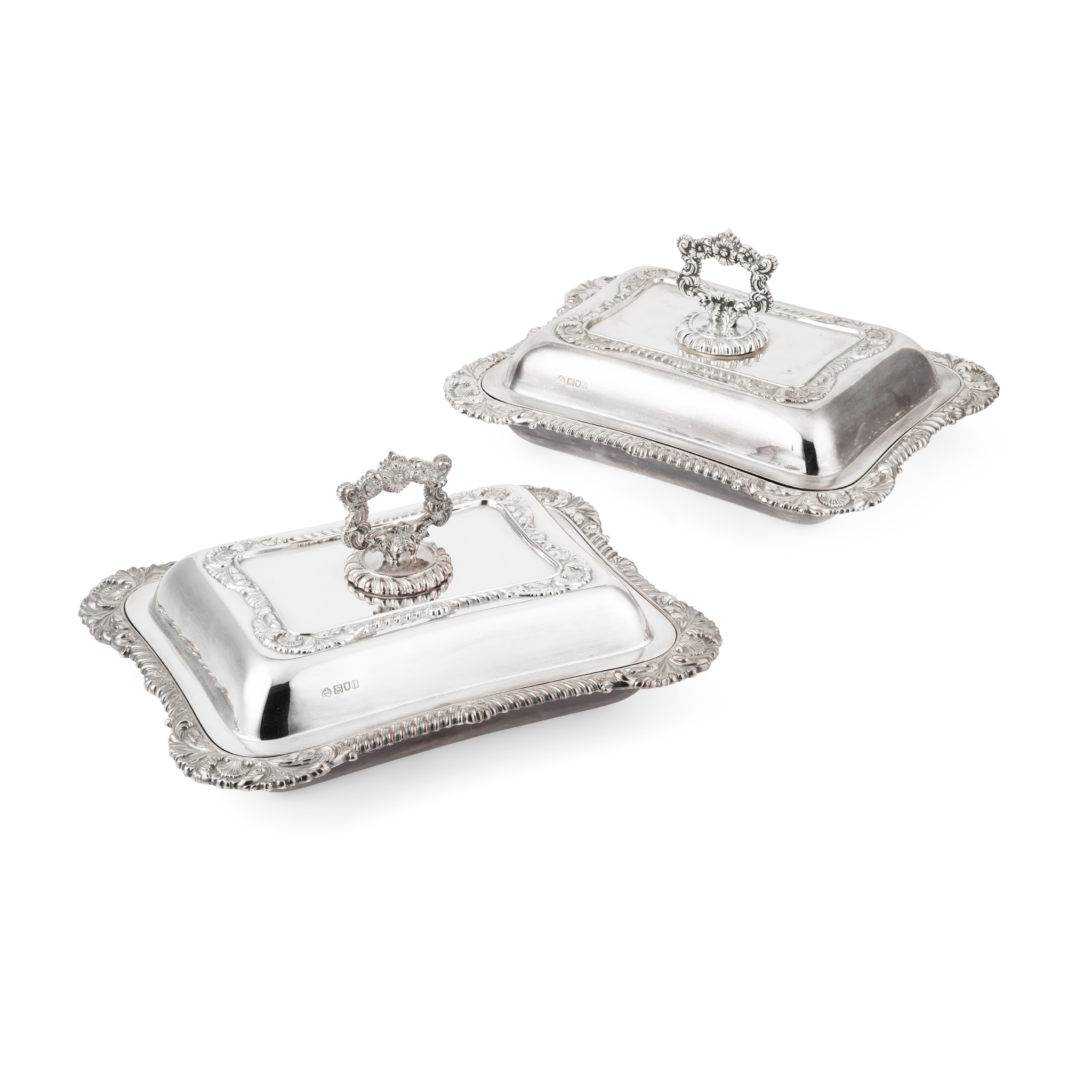 C F Hancock & Co, London 1904, each of rounded rectangular outline, with a cast shell, floral and gadrooned border, the pull-off lid with similar border and loop handle
