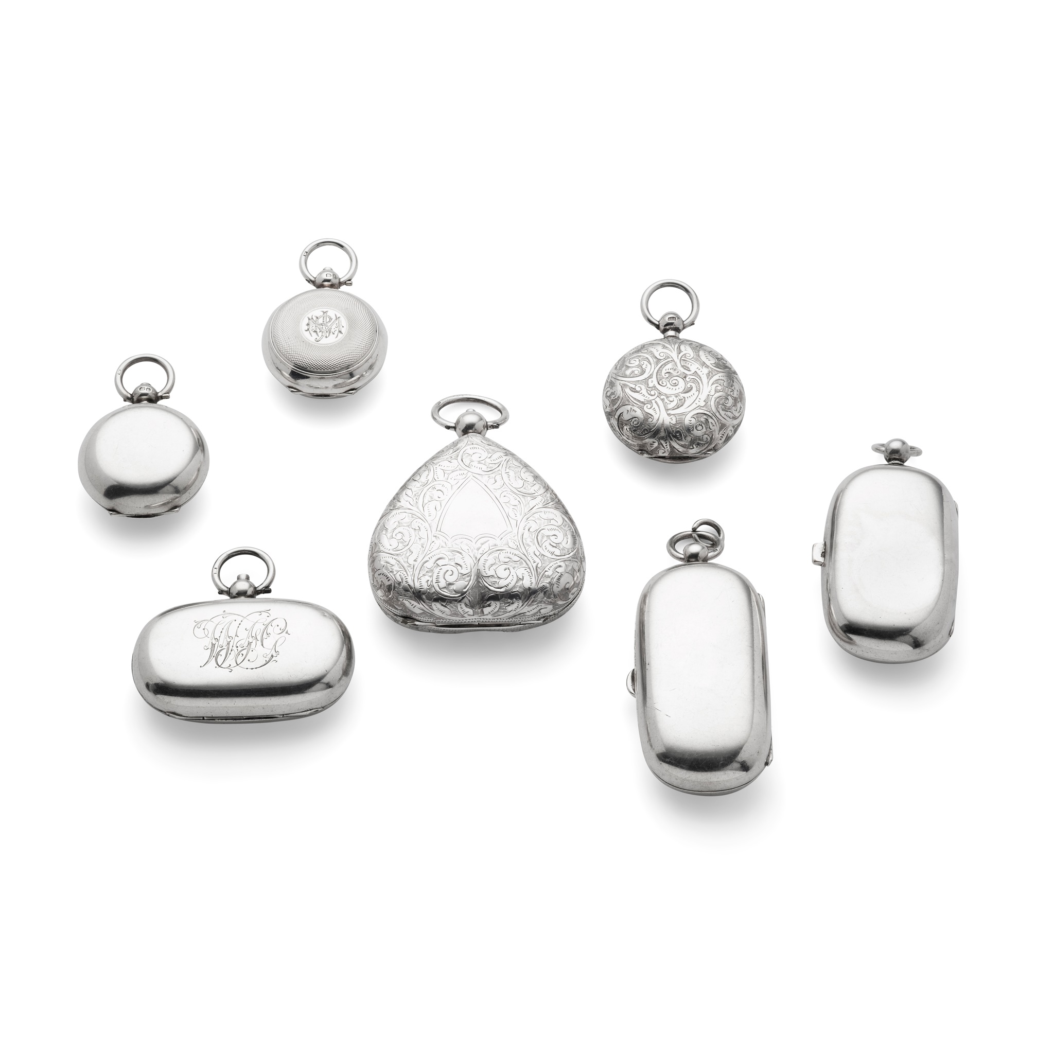 Birmingham 1901, with all-over engraved foliate decoration, with a double compartment for sovereigns and one for half-sovereigns; together with three oval double sovereign cases and three single circular sovereign cases, all with various marks