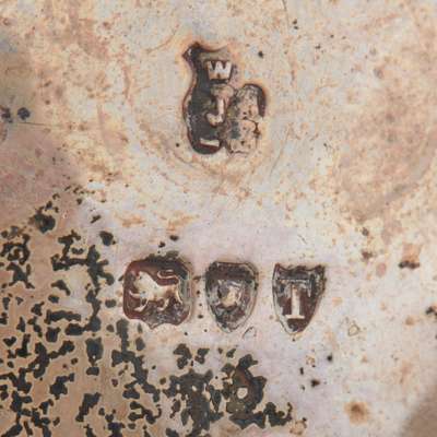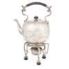 Gibson and Langman for Goldsmiths & Silversmiths Company, London 1894, the stand, John Aldwinckle & Thomas Slater, 1894, of compressed spherical form with short curved spout and swing handle with wooden work section, the circular stand with three hoof and ball supports
