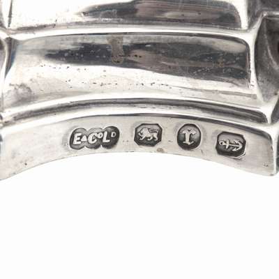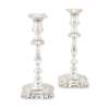 Elkington & Co Ltd, Birmingham 1891, each of knopped baluster form, to a square base with acanthus clasped corners, the removable sconces of similar design, with engraved crest to base (loaded) (2)