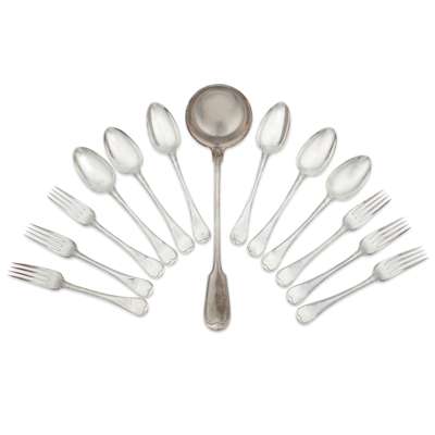 William Eaton, London 1843, each of Hanoverian Military Thread; together with a Continental soup ladle, marked 800 POSEN, of a similar pattern (13)