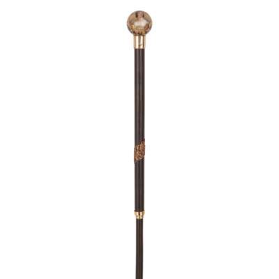 Queen Victoria interest - a gold and porcelain mounted hardwood cane