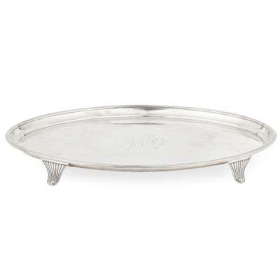 possibly John Robins, London 1798, of oval outline, threaded border with later script initials, raised on four fluted bracket feet