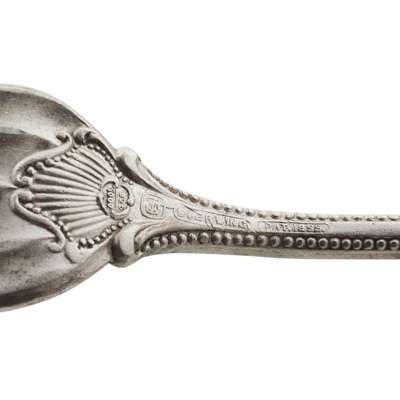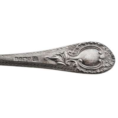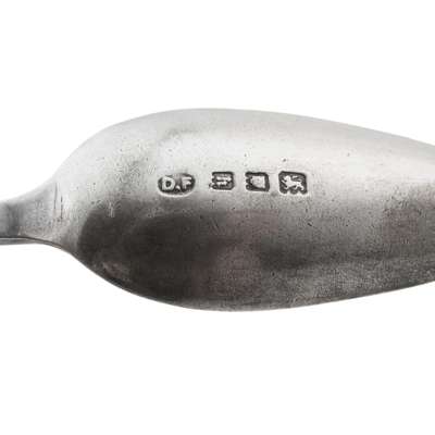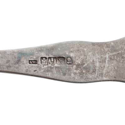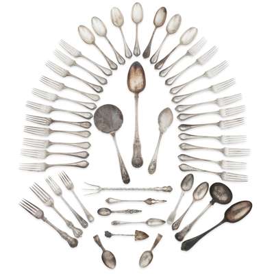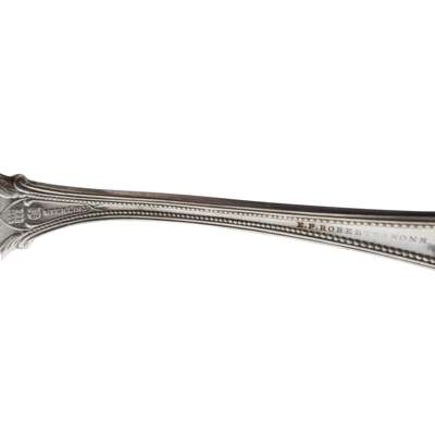 marked STERLING, all with beaded border, and engraved initials to terminal, with seven similar dessert spoons marked STERLING E.P. Robertson; together with a miscellaneous collection of flatware, including pickle forks, pap spoons, a basting spoon etc