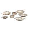Wallace & Sons, MFG Co, stamped STERLING, each of moulded oval outline, with foliate borders, engraved initials to the body and to the lid, each lacking handles; together with a pair of vegetable dishes, marked STERLING J.C. GROGAN of similar moulded oval outline, engraved initials to centre; an American bon bon dish and two various bowls (7)