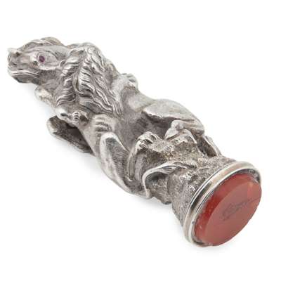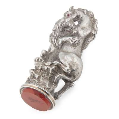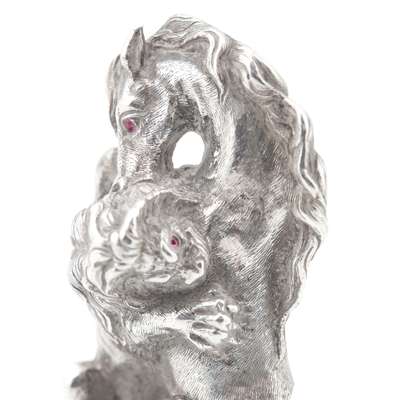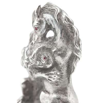 unmarked, modelled as a rearing horse fighting off a lion, vacant hardstone matrix