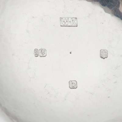 Mainly celebrated in Scotland, Kirk’s work is housed at Edinburgh University, Huntly House Museum and Aberdeen Art gallery. National Museums Scotland have on permanent display a ‘container’, (accession number K.2004.32.2), exemplifying the precision of his containers and the detail in the slate base with similar gilded detail as this one here. Kirk was also part of a select few of Scottish silversmiths invited to commission a piece for the Millennium collection now on loan from the Incorporation of Goldsmiths of the City of Edinburgh to Bute House where the Scottish First Minister resides. The commission is a beautiful rose/ fruit bowl. It is very rare for pieces to come up at auction, and we are delighted to be able to offer a piece by such an iconic Scottish silversmith.