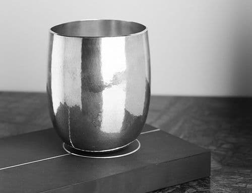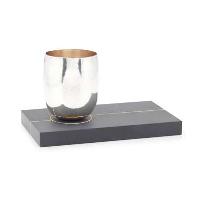 William Kirk, Edinburgh 2001, the hand-raised tumbler with a planished finish and spread marks to the underside, the slate stand with gilt detail (2)