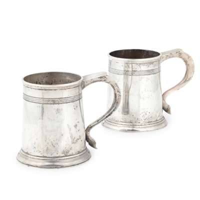 Williams Comyns & Sons Ltd, London 1934/ 1937, each of traditional form with threaded girdle and foot, S-scroll handle to each (2)