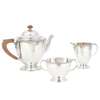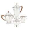 Fenton, Russell & Co Ltd, Sheffield 1931, comprising a teapot, water pot, twin-handled sugar basin and a milk jug, all of slightly tapered panelled form, cast floral and shell border, leaf clasped C-scroll handles, each raised on a stepped circular foot (4)