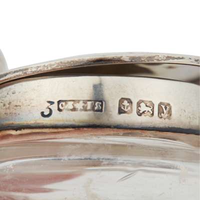 Cornelius Desormeaux Saunders & James Francis Hollings (Frank) Shepherd, Birmingham 1923, of traditional form, each with a shell clasped thumb piece, together with four spirit labels, two for whiskey and two for whisky