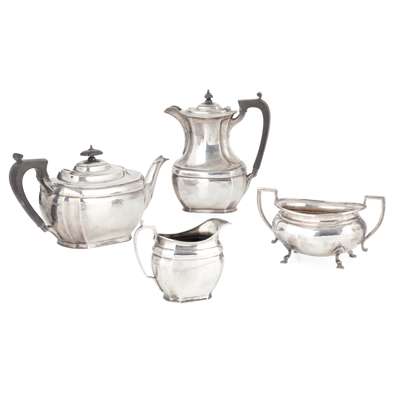 Harrison Brothers & Howson, Sheffield 1928, comprising a waterpot, teapot and milk jug, all of panelled form; together with a similar plated twin-handled sugar basin (4)