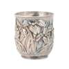 possibly Taisho period, of cylindrical form with applied Iris motifs, to a matte ground