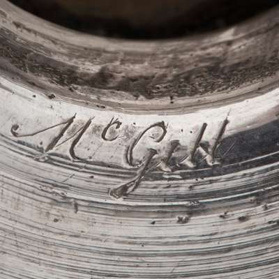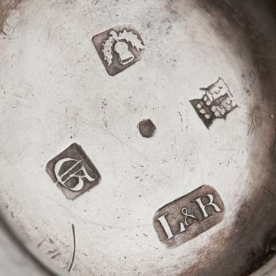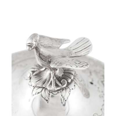 with floral chased decoration, vacant cartouches, ivory insulators to the acanthus clasped C-scroll handle, the finial to the hinged lid modelled as a phoenix in flight, 'McGill' engraved to the underside of the foot