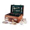 the leather suitcase fitted with a large set of heavily embossed travelling accessories, including dressing table tray, jars, bottles and brushes, button hooks, shoe horn, manicure set etc.