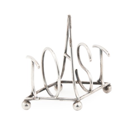 of diamond shape, the divisions formed as the letters to form the word TOAST, raised on ball feet, stamped registration design no. 10499/249288,