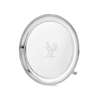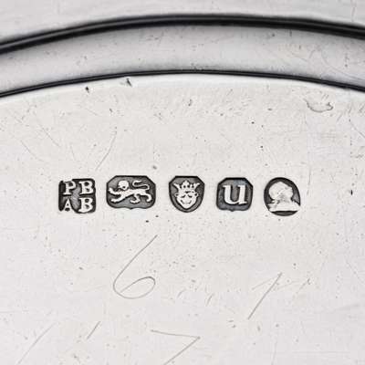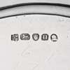 of circular outline, threaded border, engraved cockerel crest to centre, raised on three threaded bracket feet