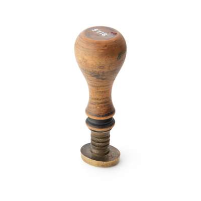 A LATE 19TH CENTURY BRASS AND TURNED WOOD DESK SEAL